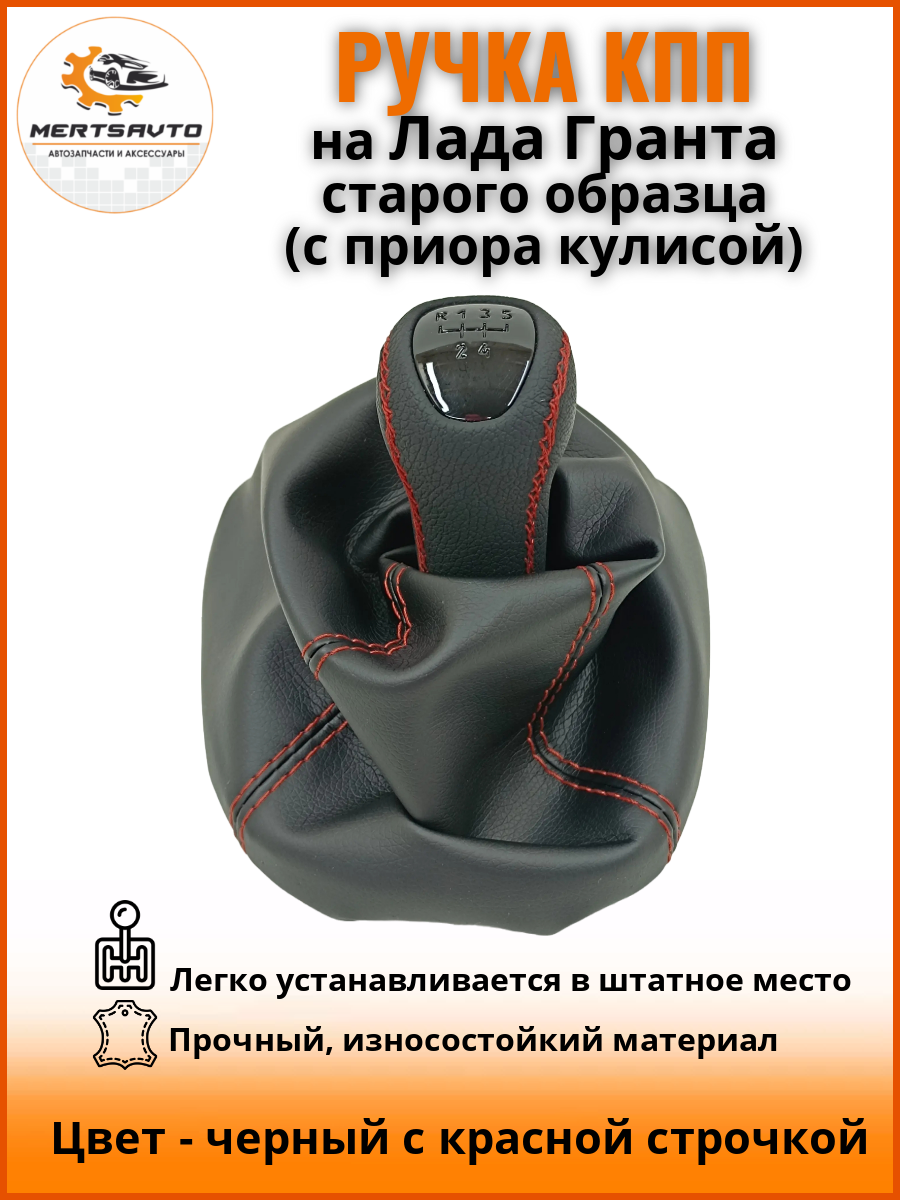 Ручка КПП Лада Гранта (LADA Granta) старого образца (с Приора кулисой),люкс-черная вставка, черный с красной строчкой информация: