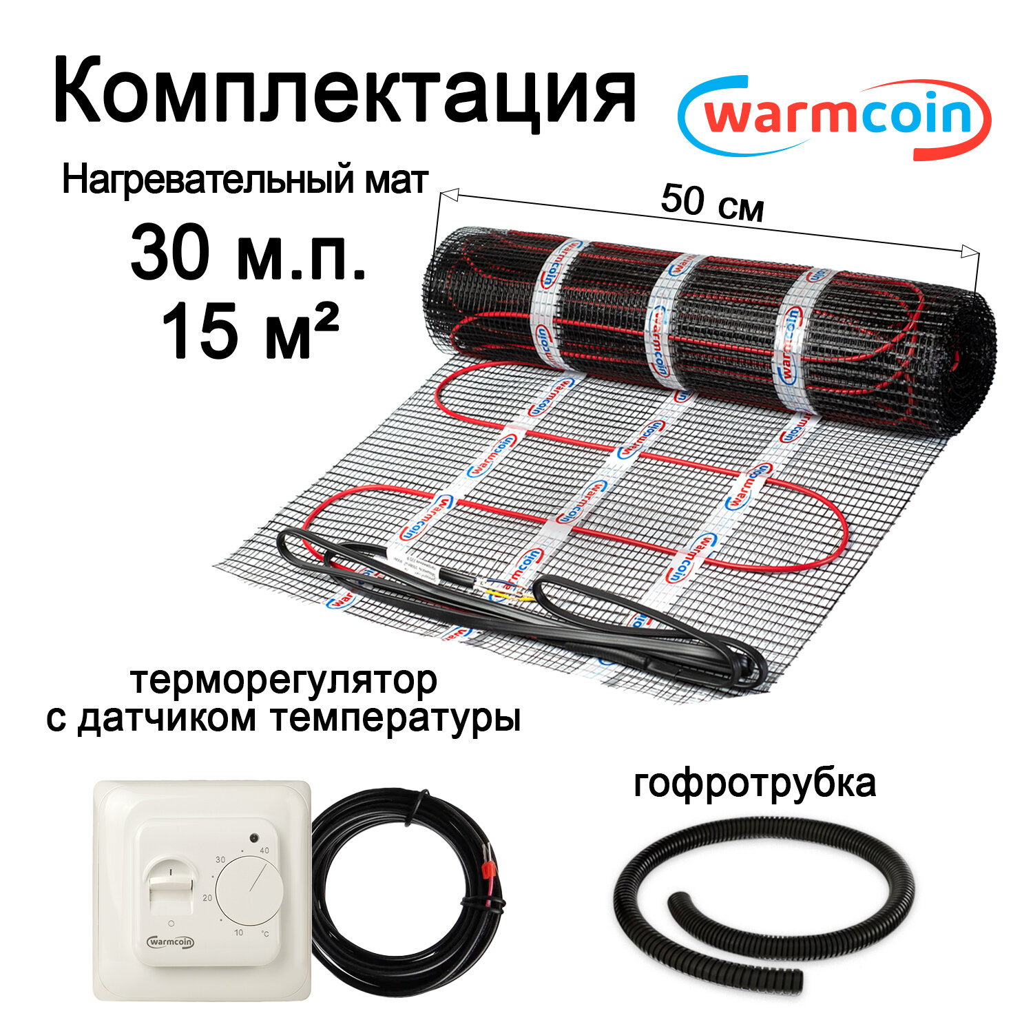 Теплый пол электрический Warmcoin BLACK с терморегулятором W70 белым 15 м.кв. информация: