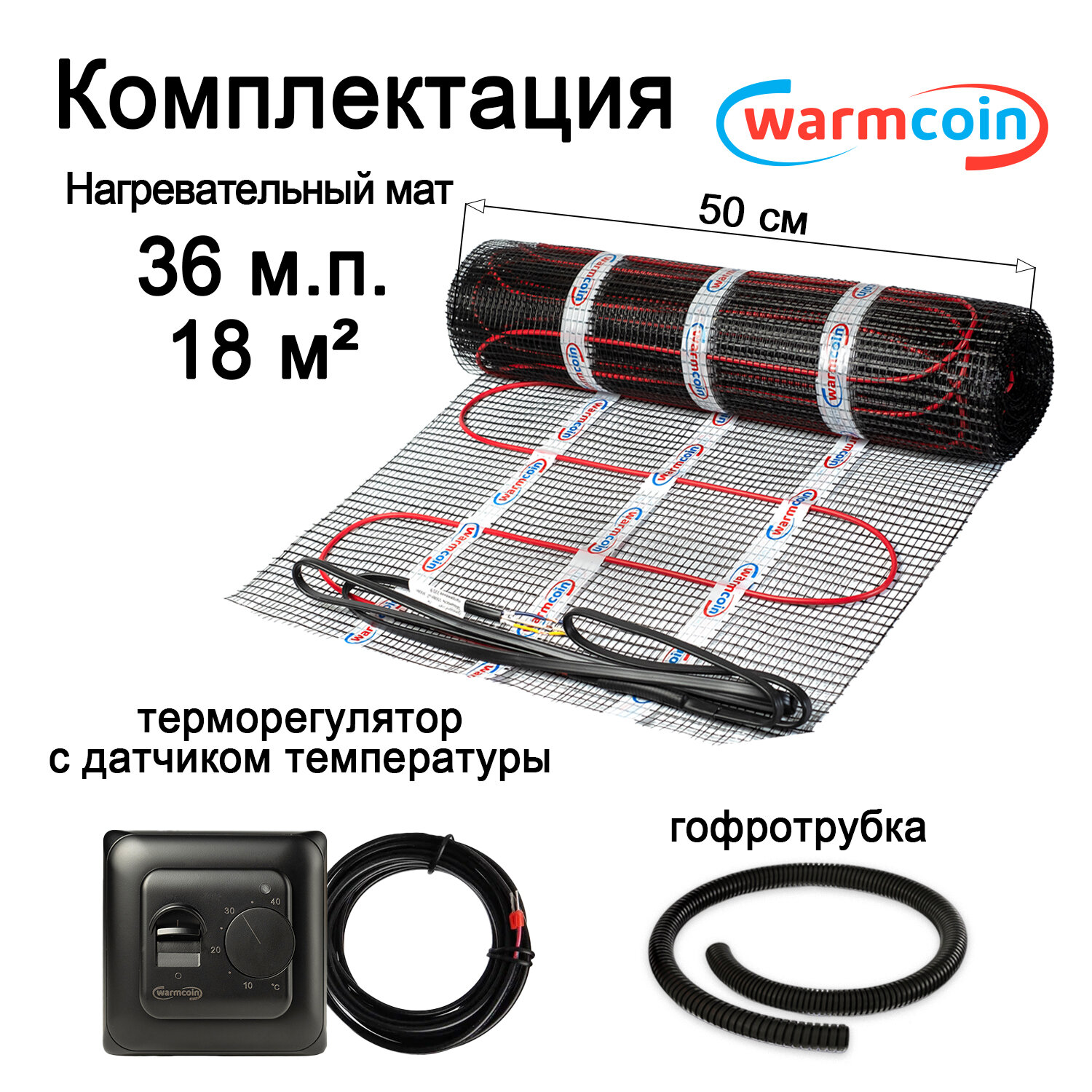 Теплый пол электрический Warmcoin BLACK с терморегулятором W70 черным 18 м.кв. информация: