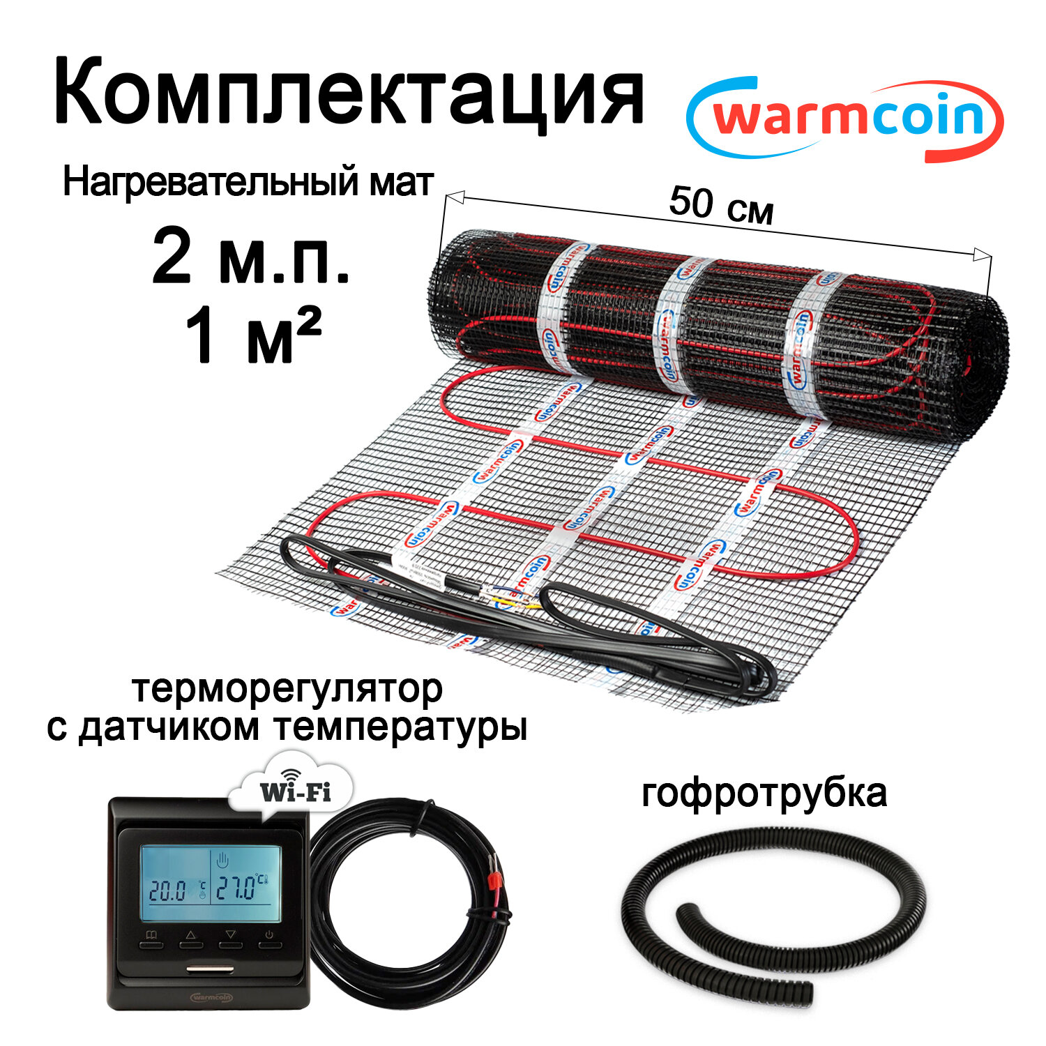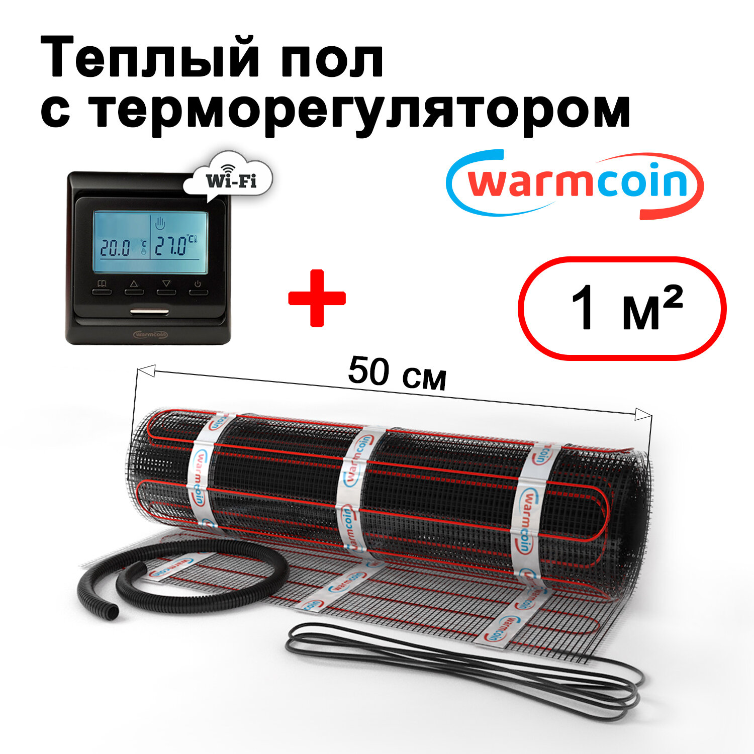 Теплый пол электрический Warmcoin BLACK с терморегулятором W51 Wi-Fi черным 1 м.кв. информация: