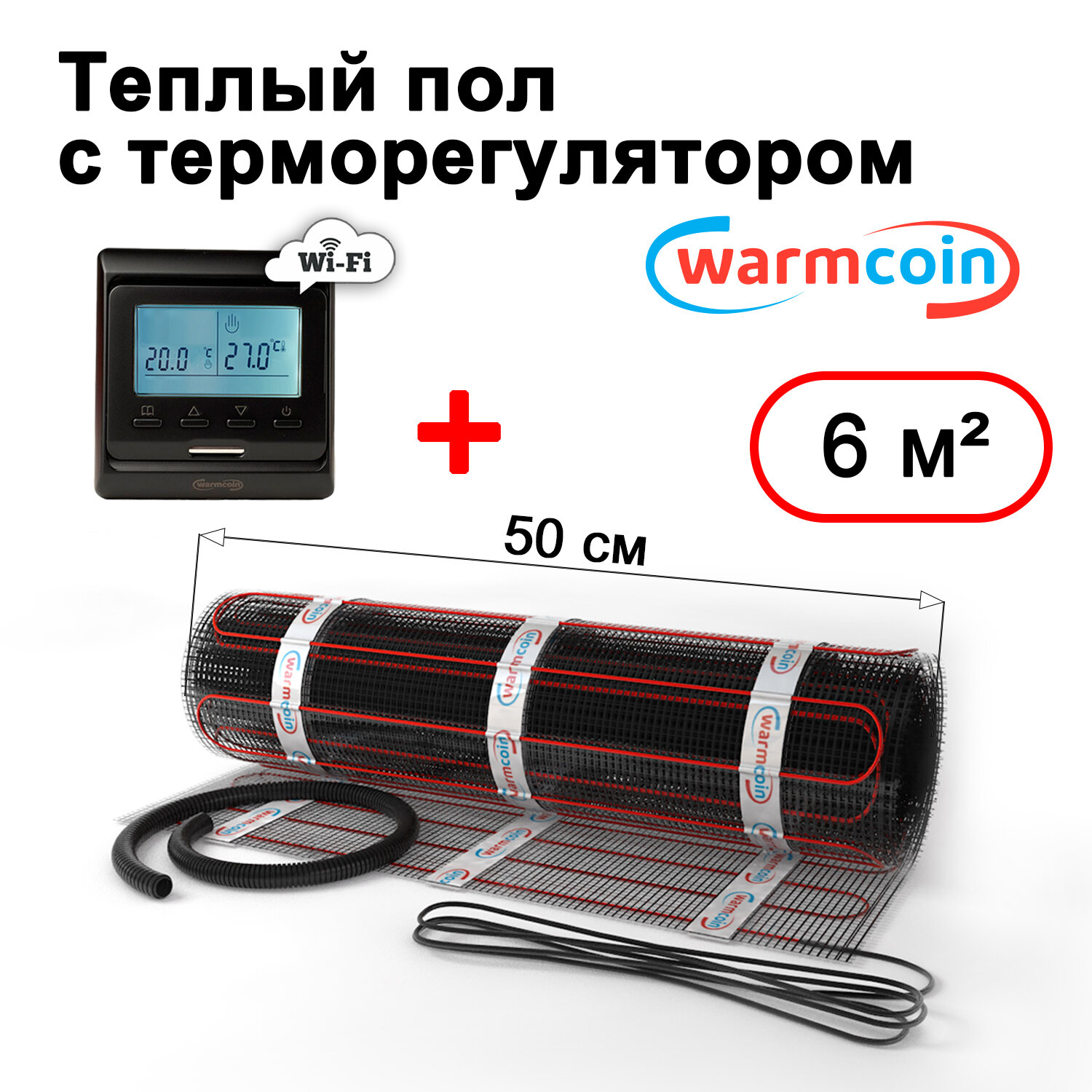 Теплый пол электрический Warmcoin BLACK с терморегулятором W51 Wi-Fi черным 6 м.кв. информация: