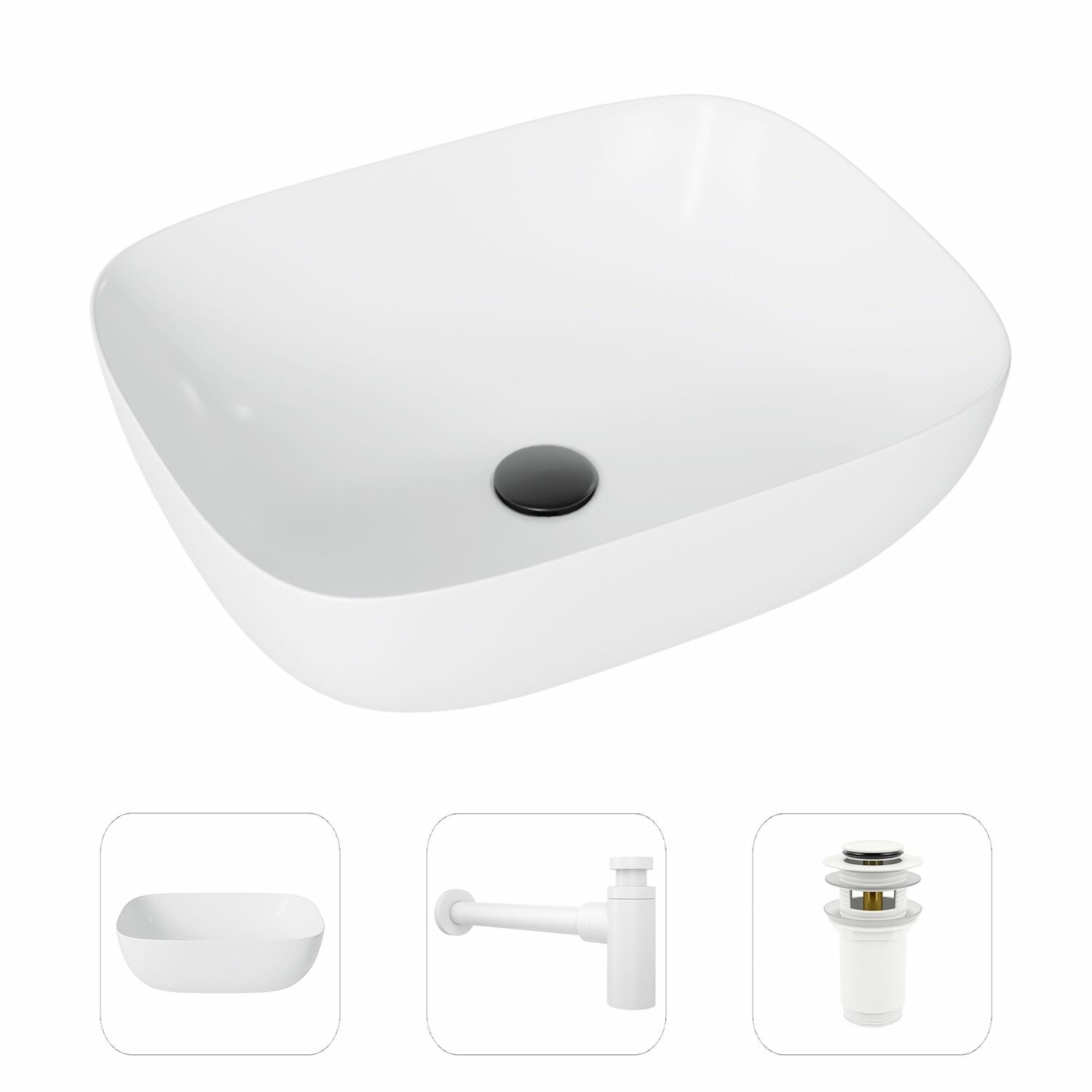 Накладная раковина в ванную Helmken 49349000 комплект 3 в 1: умывальник прямоугольный 49,5 см, сифон и донный клапан click-clack в цвете белый информация: