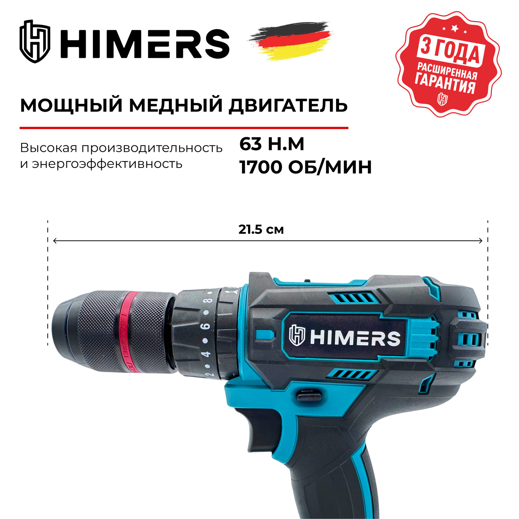 10 цен на Ударный шуруповерт HIMERS DF63B аккумуляторный 24V, 2 АКБ по 3 А.ч., 63 Н.м., Кейс / для сверления, закручивания 24в