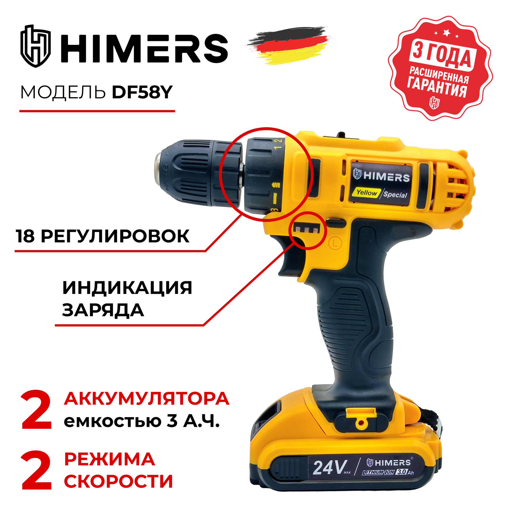 Отзывы на Дрель - шуруповерт HIMERS DF58Y PRO аккумуляторный 24V, 2 АКБ, 58 Н.м / Версия Yellow special / Кейс с набором бит, свёрел, головок инструментов 107 предметов / для сверления, долбления, закручивания 24В