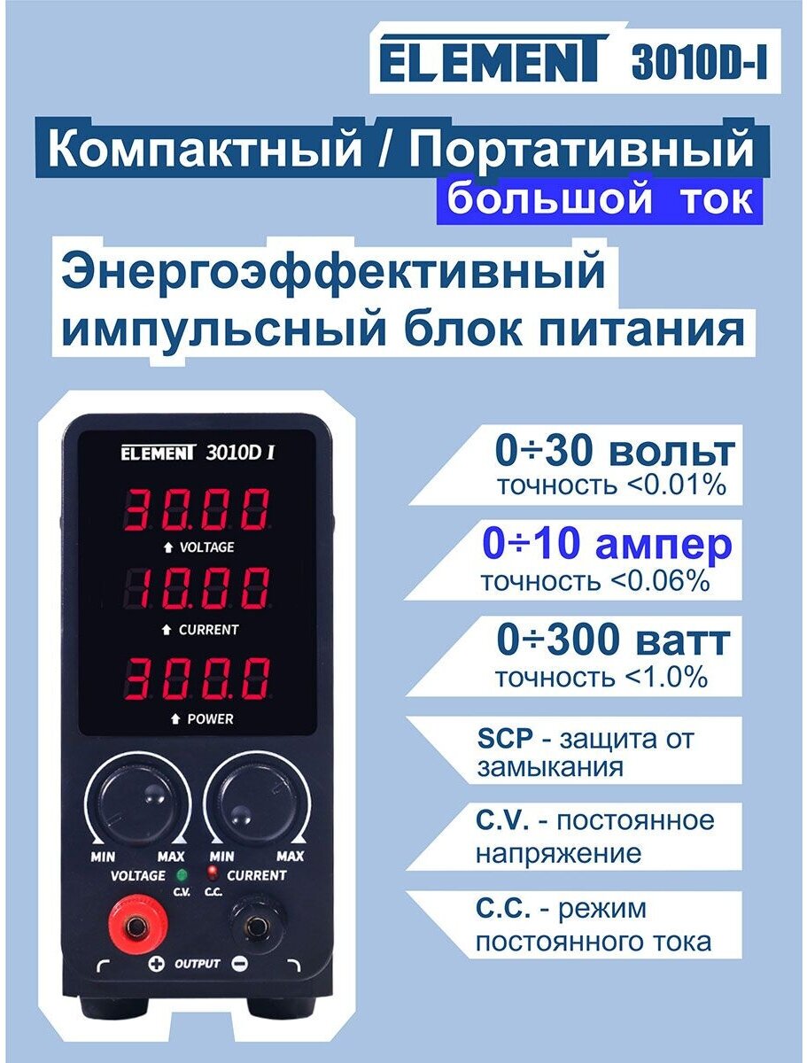 Лабораторный источник (блок) питания ELEMENT 3010D-I, Импульсный, черный (3010D-I) информация: