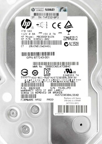 10 цен на Жесткий диск HP 677355-001 3Tb 7200 SAS 3,5" HDD
