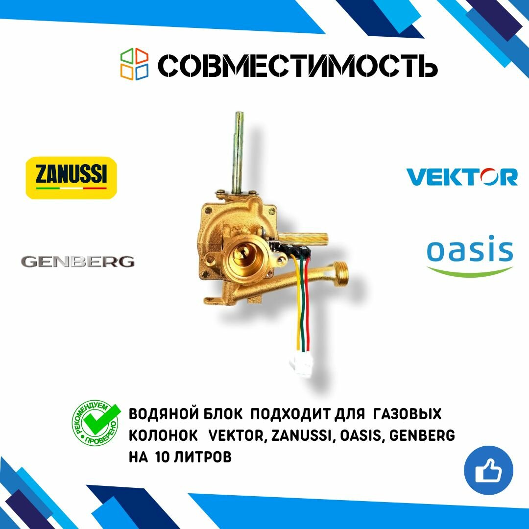 Отзывы на Водяная часть (блок, узел) для газовых колонок VEKTOR, OASIS, ZANUSSI, GENBERG на 10 литров (диаметр мембраны 54 мм.) в полном сборе