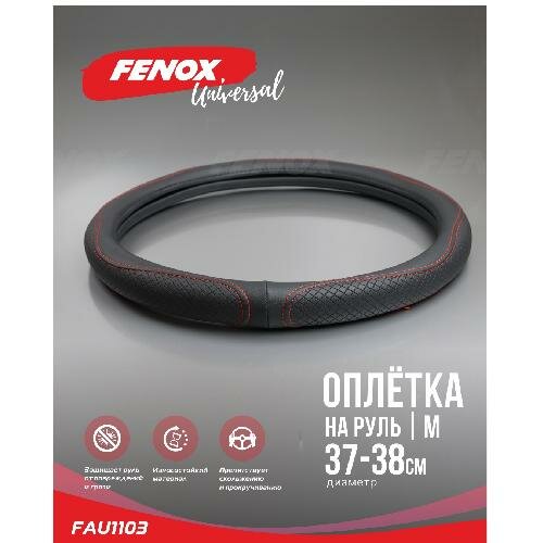 FENOX FAU1103 оплетка рулевого колеса Размер M, D-37-38см, обхват-8см , искусственная кожа, черный, волнообразная текстурированная встравка FAU1103