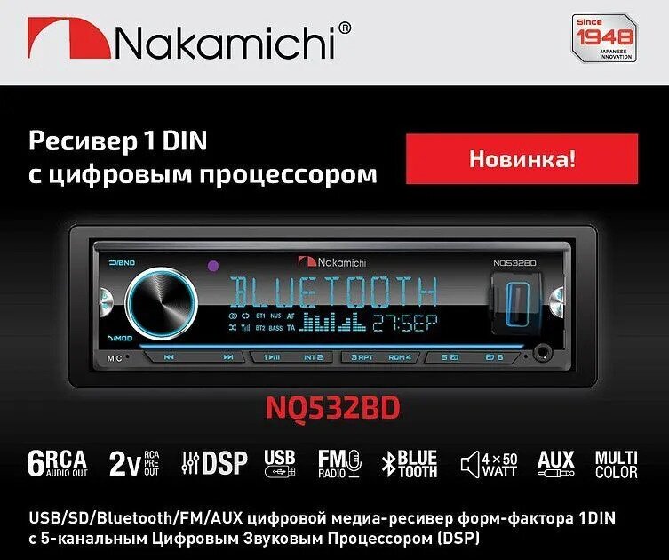 Процессорная Автомагнитола Nakamichi NQ532BD,4 х 50 Вт,DSP, пульт в комплекте