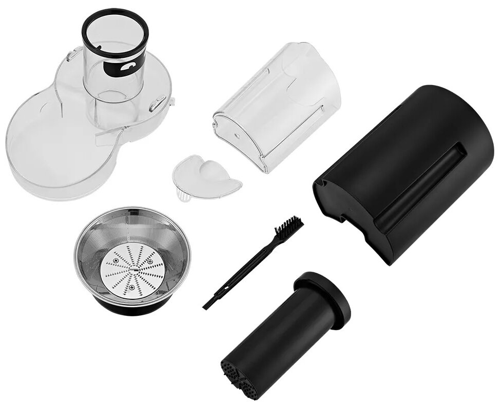 | Подробная комплектация | соковыжималка - 1 шт.; чаша - 1 шт.; фильтр - 1 шт.; крышка - 1 шт.; толкатель - 1 шт.; контейнер для жмыха - 1 шт.; контейнер для сока с крышкой - 1 шт.; крышка для патрубка для выхода сока - 1 шт.; щеточка для чистки - 1 шт.; руководство по эксплуатации - 1 шт.; коллекционный магнит - 1 шт.(опционально) |