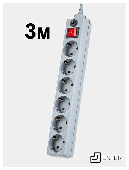 Сетевой фильтр Perfeo Power+ PF_A4673, серый (10A, 3м, 6гн) информация:
