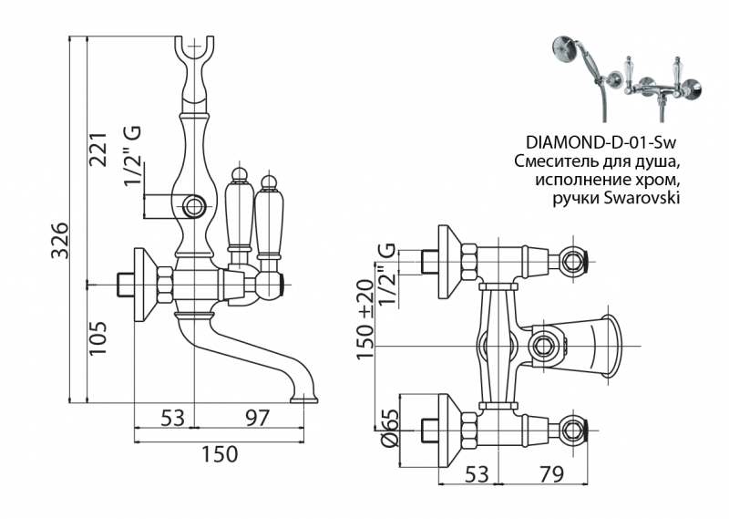 Смеситель для душа Cezares Diamond DIAMOND-D-02-Sw 35 520 ₽