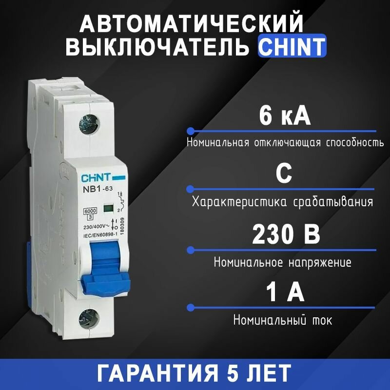 CHINT Авт. выкл. NB1-63 1P 1A 6кА х-ка C (R) информация: