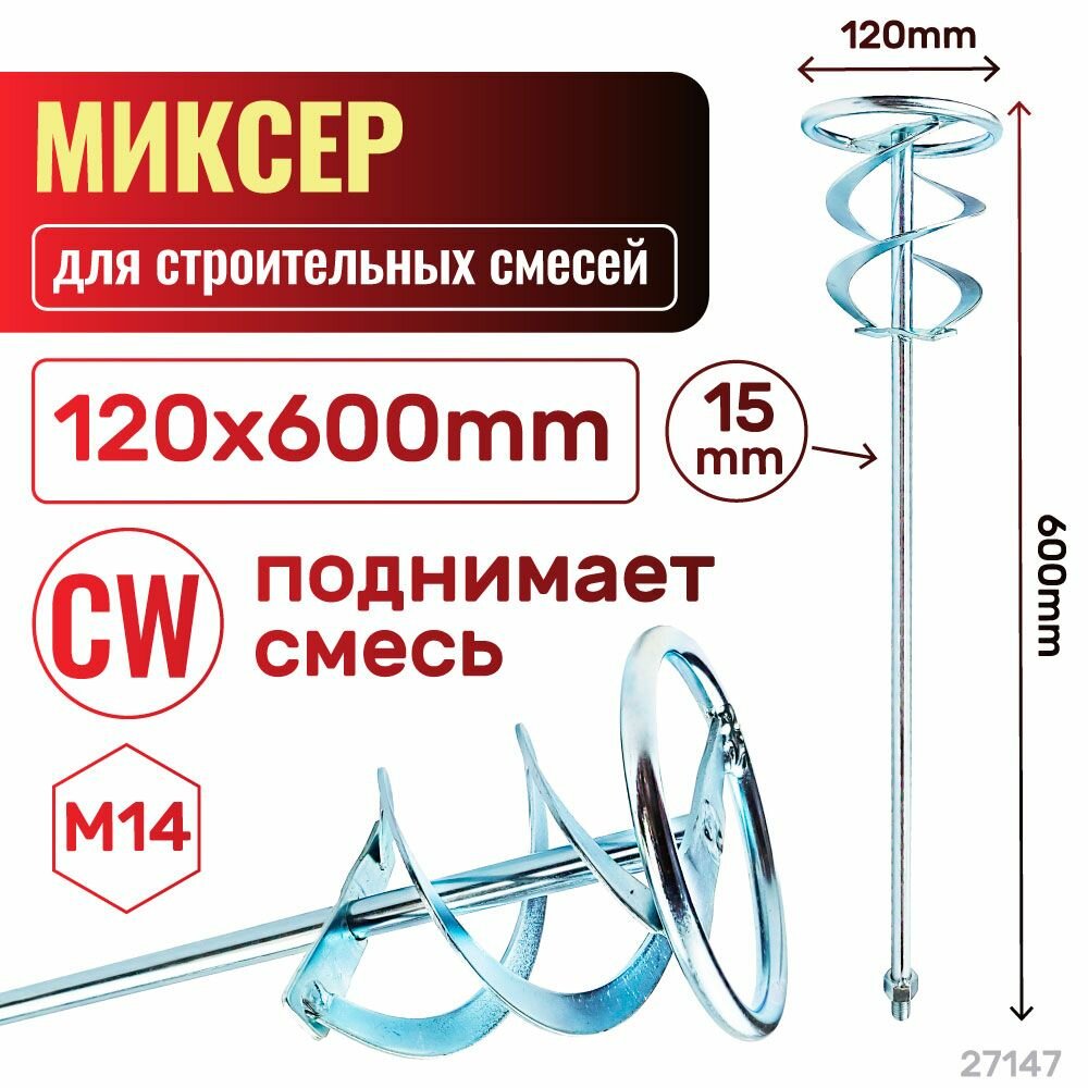 Миксер, насадка, венчик для строительных смесей 120х600мм плоский CW(поднимает смесь). (Хвостовик М14) Skrab 27147 информация: