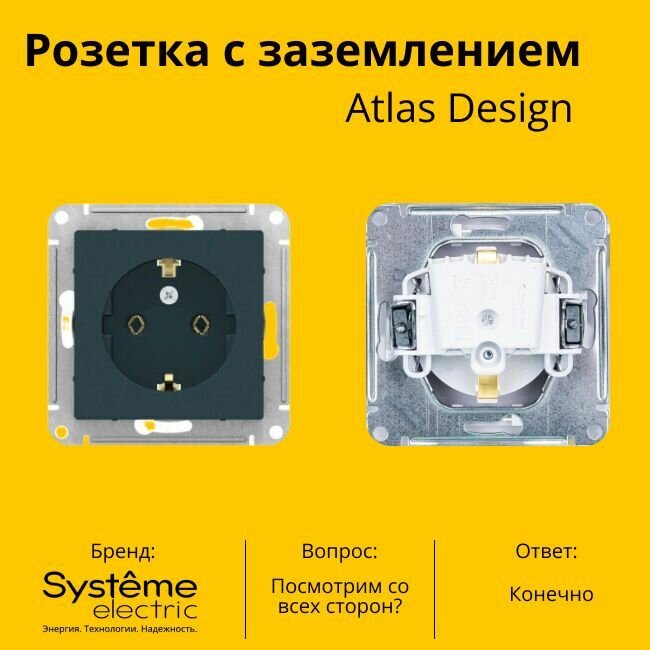 Отзывы на Розетка электрическая Schneider Electric (Systeme Electric) Atlas Design с заземлением, 16А Изумруд ATN000843 - 1 шт.