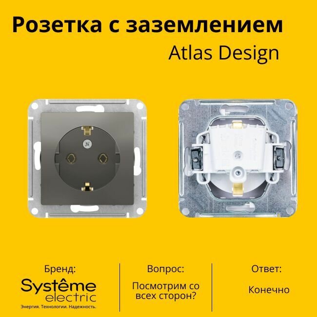 Отзывы на Розетка электрическая Schneider Electric (Systeme Electric) Atlas Design с заземлением, 16А Сталь ATN000943 - 5 шт.