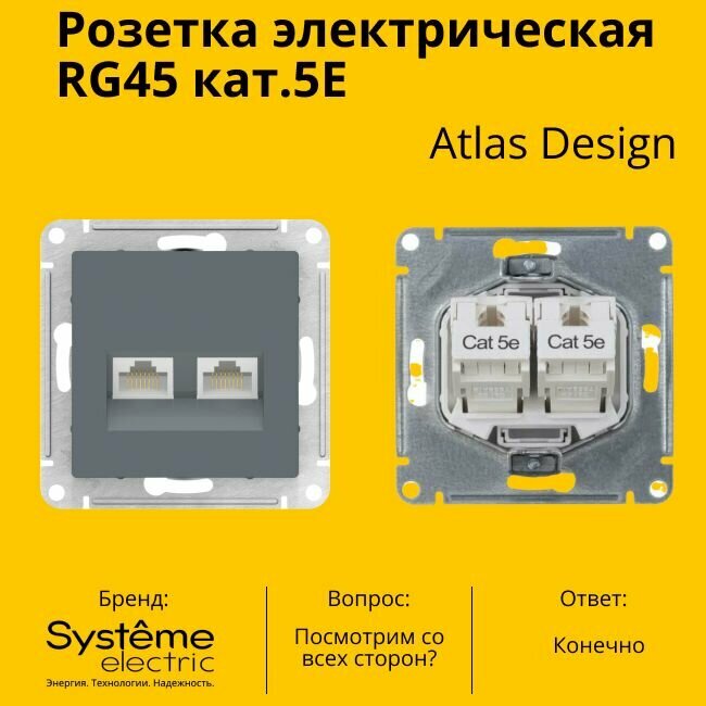 Отзывы на Розетка двухместная компьютерная электрическая Schneider Electric (Systeme Electric) Atlas Design RJ45 кат.5E, Грифель ATN000785 - 1 шт.