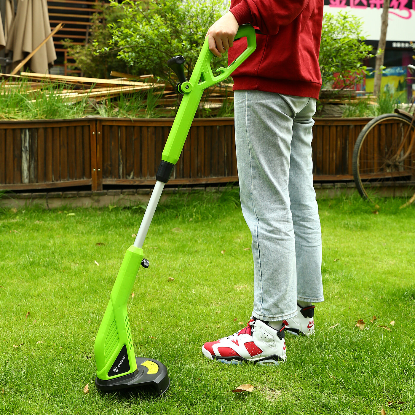 | Особенности | триммер садовый электрический DEKO DKTR550 - компактная модель, удобная для скашивания травы в труднодоступных местах, вдоль заборов, клумб, подравнивания газонов, краев садовых дорожек |