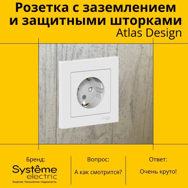 Блок комбинированный Systeme Electric ATN54XXXX AtlasDesign, 10 А, с защитной шторкой, с заземлением
