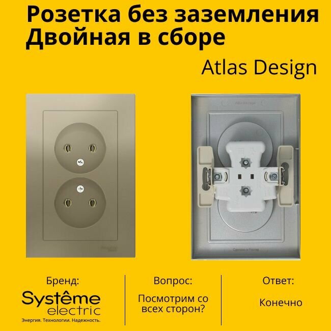 Отзывы на Розетка электрическая двухместная Schneider Electric (Systeme Electric) Atlas Design без заземления в сборе 16А, Шампань ATN000520 - 10 шт.