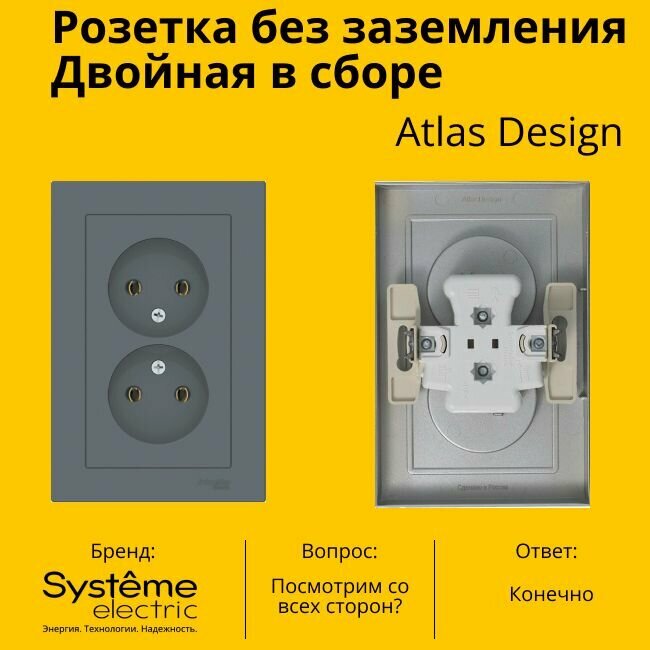 Отзывы на Розетка электрическая двухместная Schneider Electric (Systeme Electric) Atlas Design без заземления в сборе 16А, Грифель ATN000720 - 10 шт.
