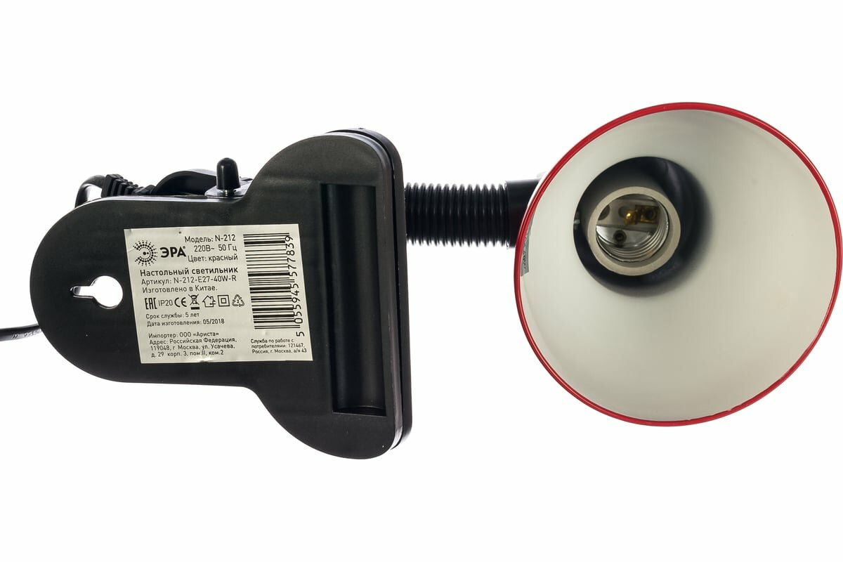 Настольный светильник N-212-E27-40W-BK красный / Настольный светильник на прищепке информация: