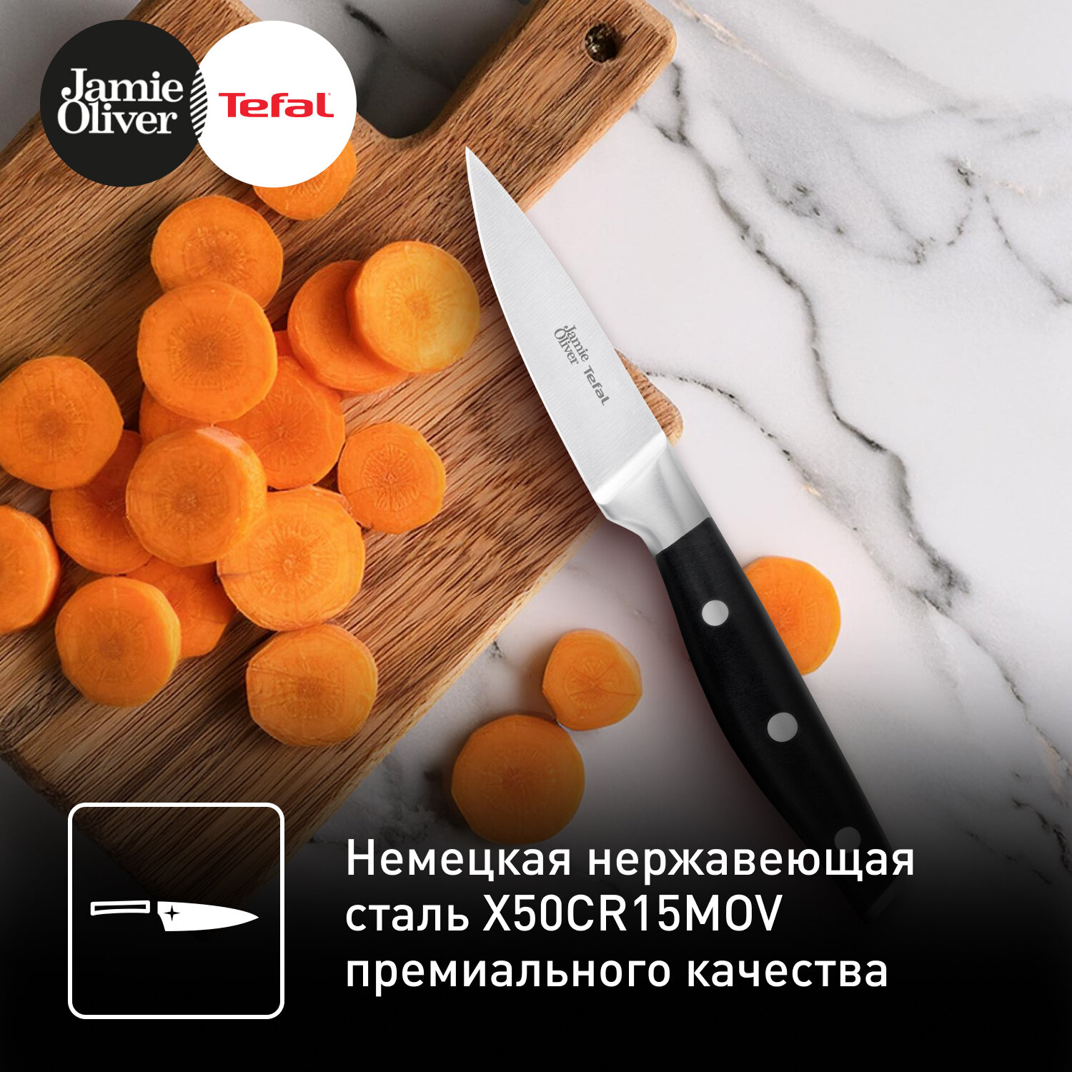 Отзывы на Нож для чистки овощей Tefal Jamie Oliver K2671144, 9 см, нержавеющая сталь
