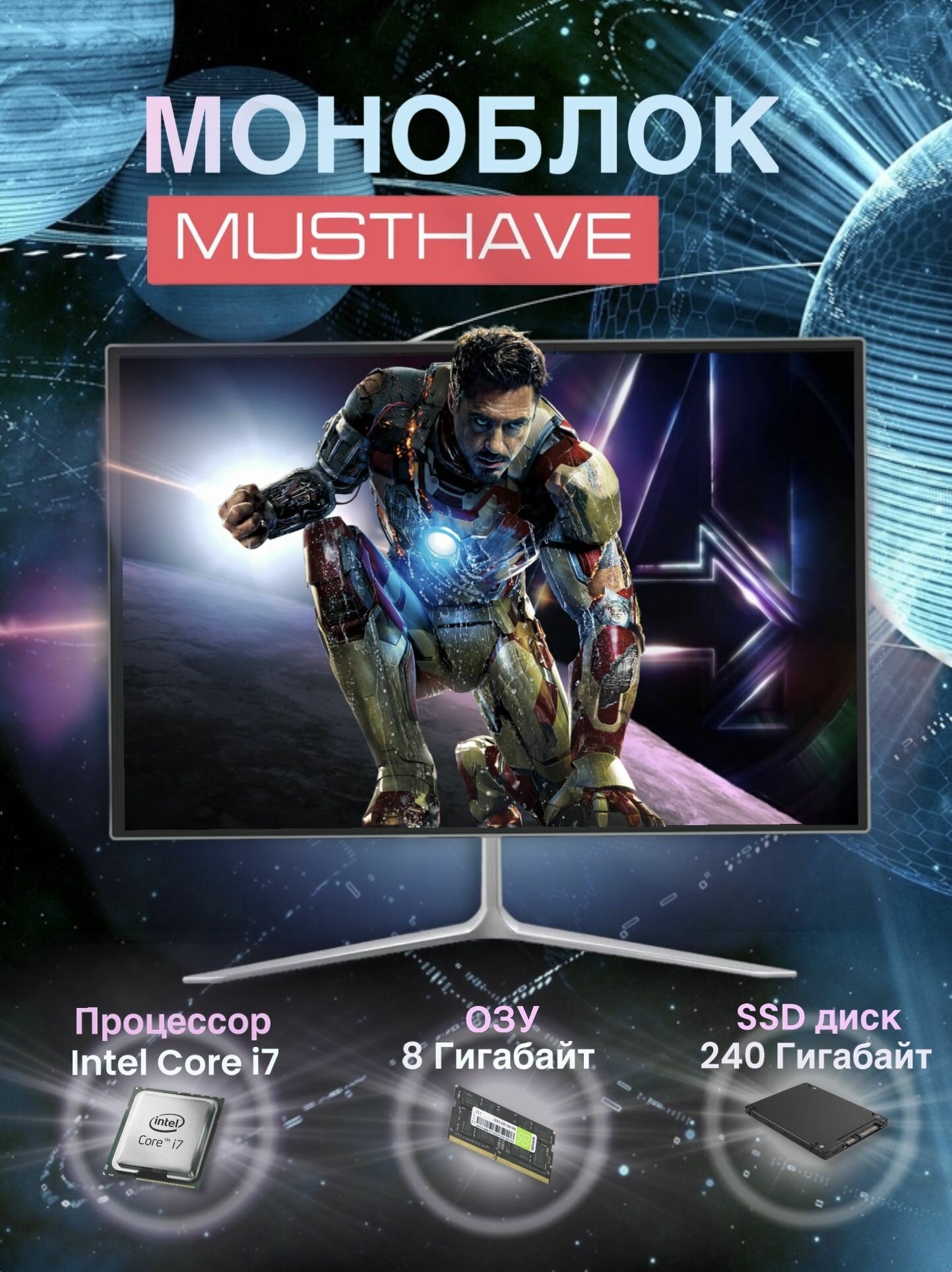 Моноблок 24", Intel Core i7, 16 Gb, SSD 512 Gb, Intel HD, Windows, клавиатура + мышь информация: