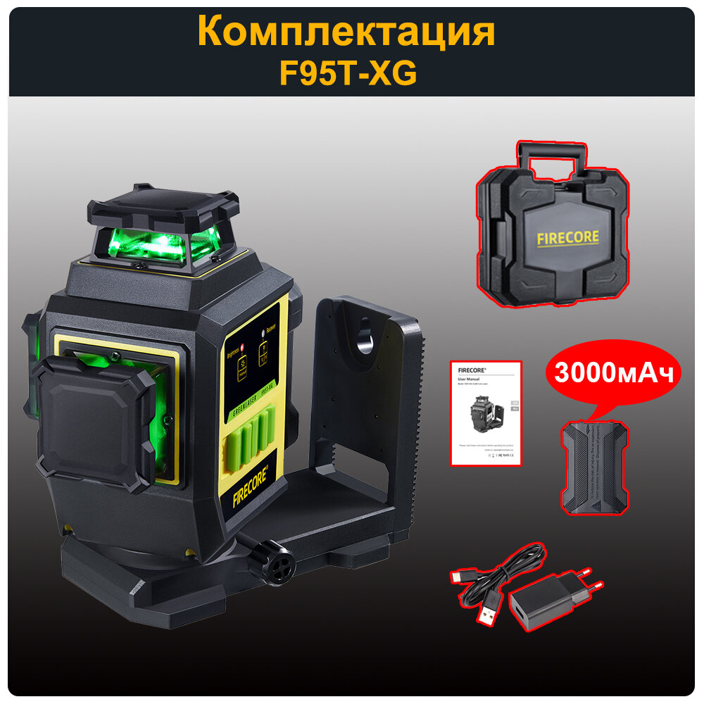 Лазерный уровень/нивелир FIRECORE F95T-XG 12 Линий,Зеленый луч,чемодан,с встроенным L-образным магнитным кронштейном информация: