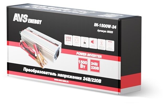 10 цен на Преобразователь напряжения А/М 24В в 220В AVS IN-1500W-24, 1500Вт, AVS