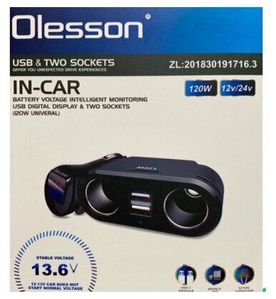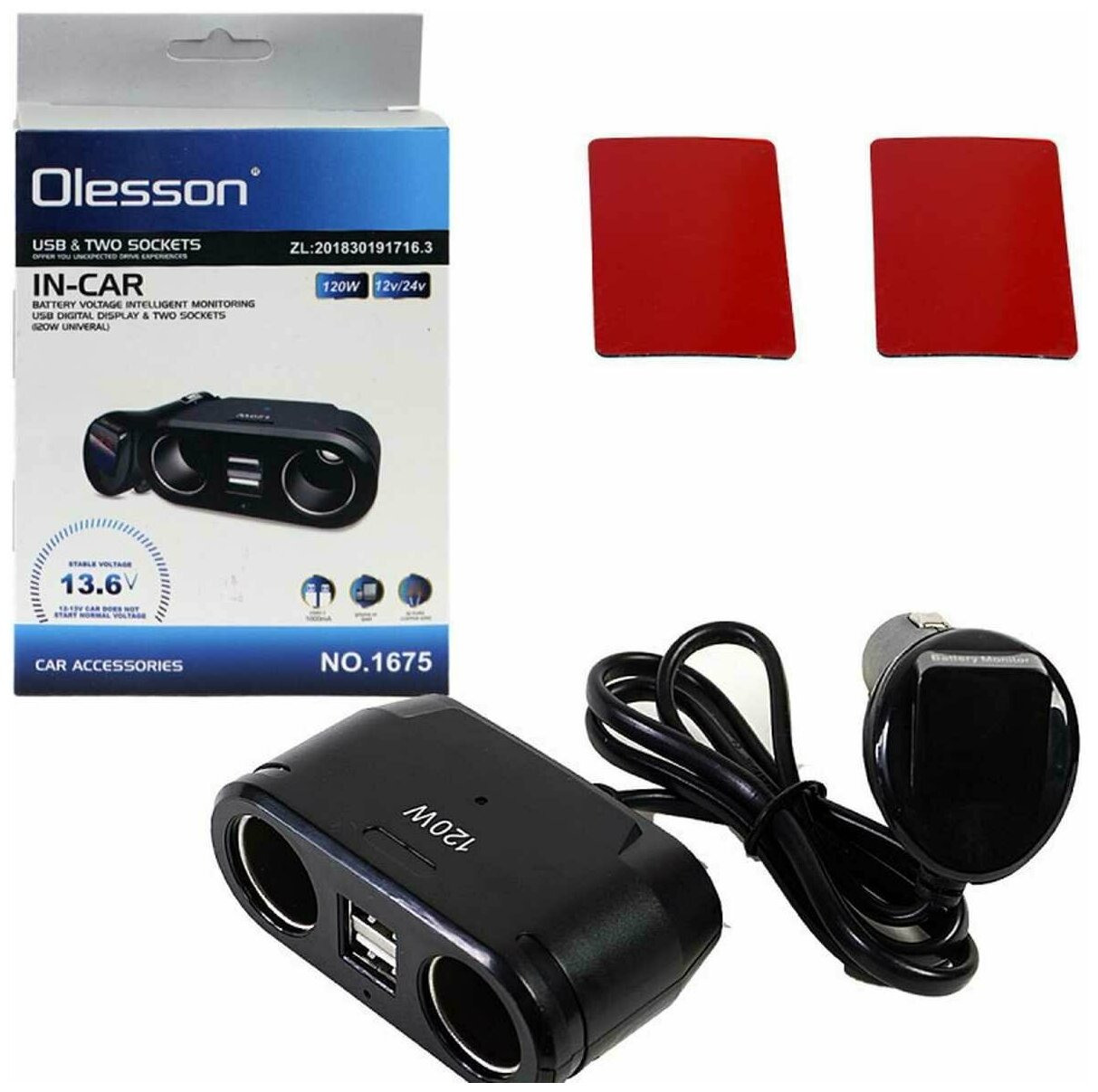 Прикуриватель-2 + 2USB + вольтметр Olesson 1675 автомобильный информация: