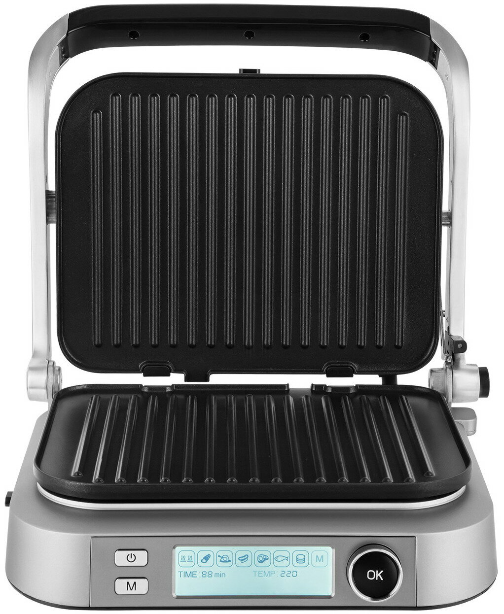 | Дополнительная информация | Фиксатор положения (замок для вертикального хранения), Автоматическое определение толщины стейка, Размер рабочей поверхности 280 × 210 мм |