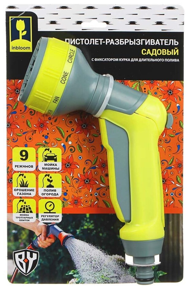 10 цен на Для полива (INBLOOM BY Пистолет садовый для полива, 9 режимов, регулятор давления, ABS+TPR 161-015)