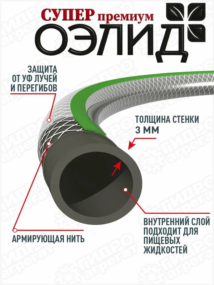 Шланг поливочный Д=3/4" (20м) арм. 3-х слойный Гидроагрегат оэлид супер премиум информация: