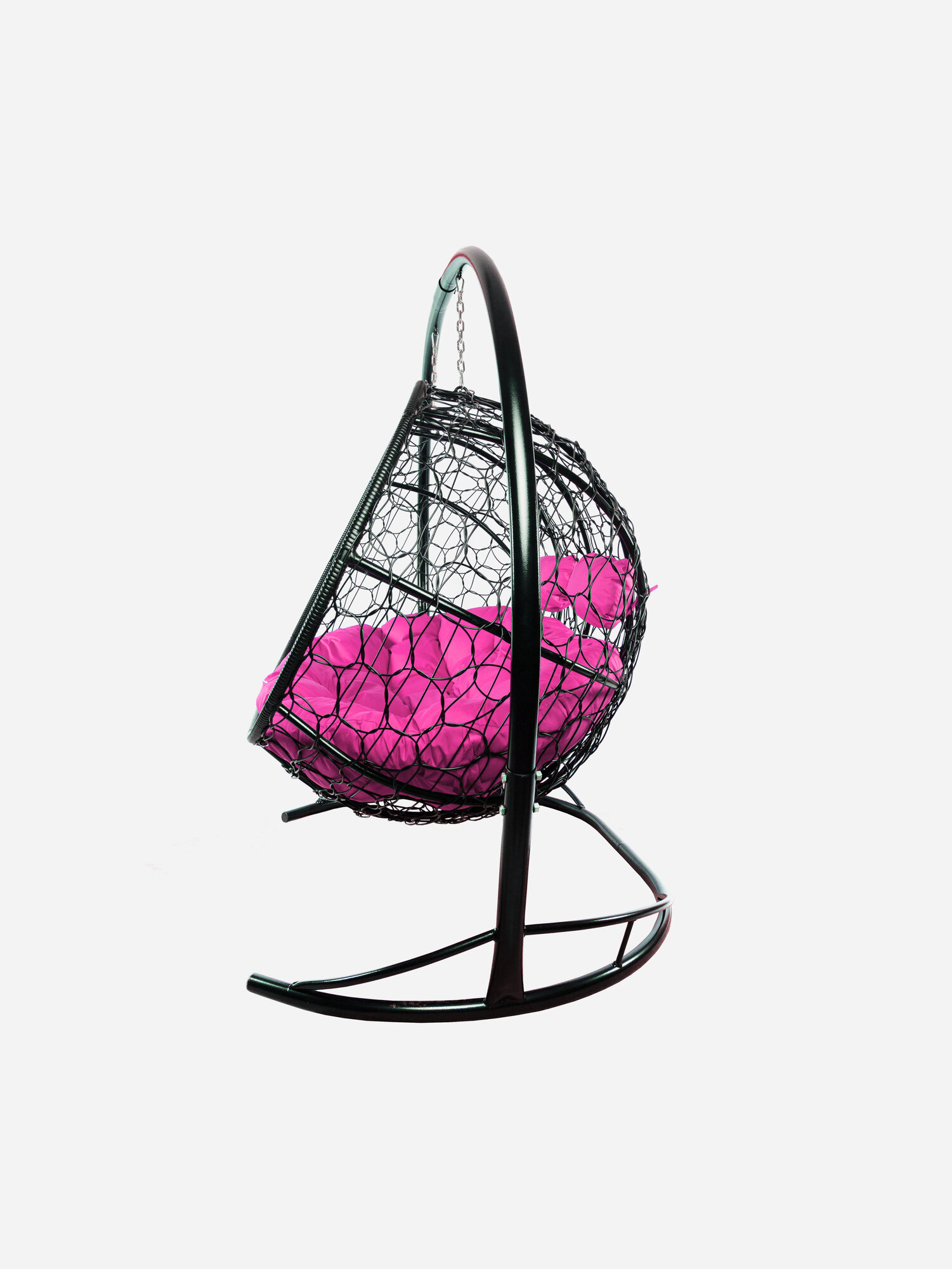 Подвесной диван лежебока с ротангом чёрный, розовая подушка