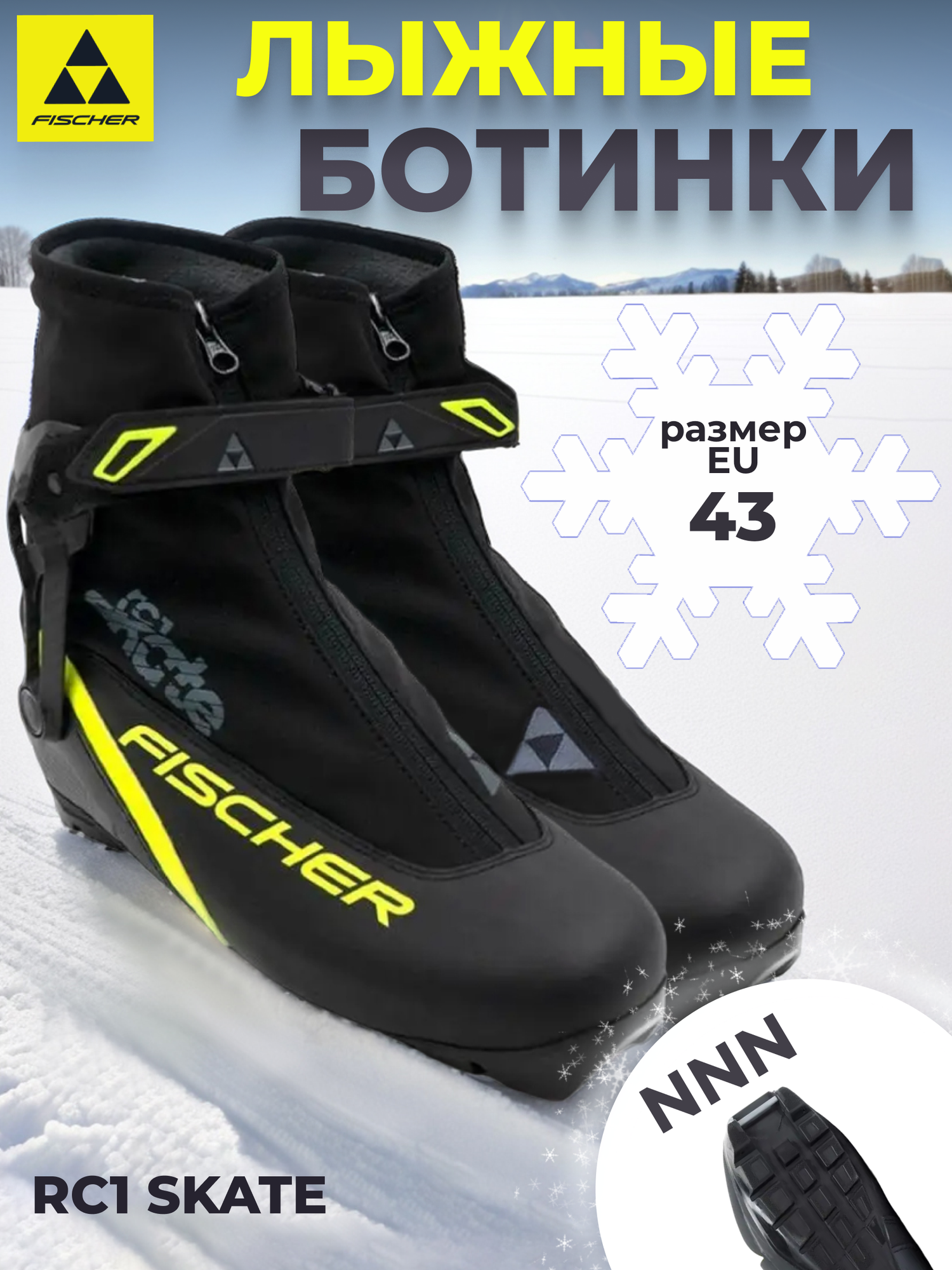 Лыжные ботинки FISCHER NNN RC1 Skate (S86022) (черный/желтый) (39)