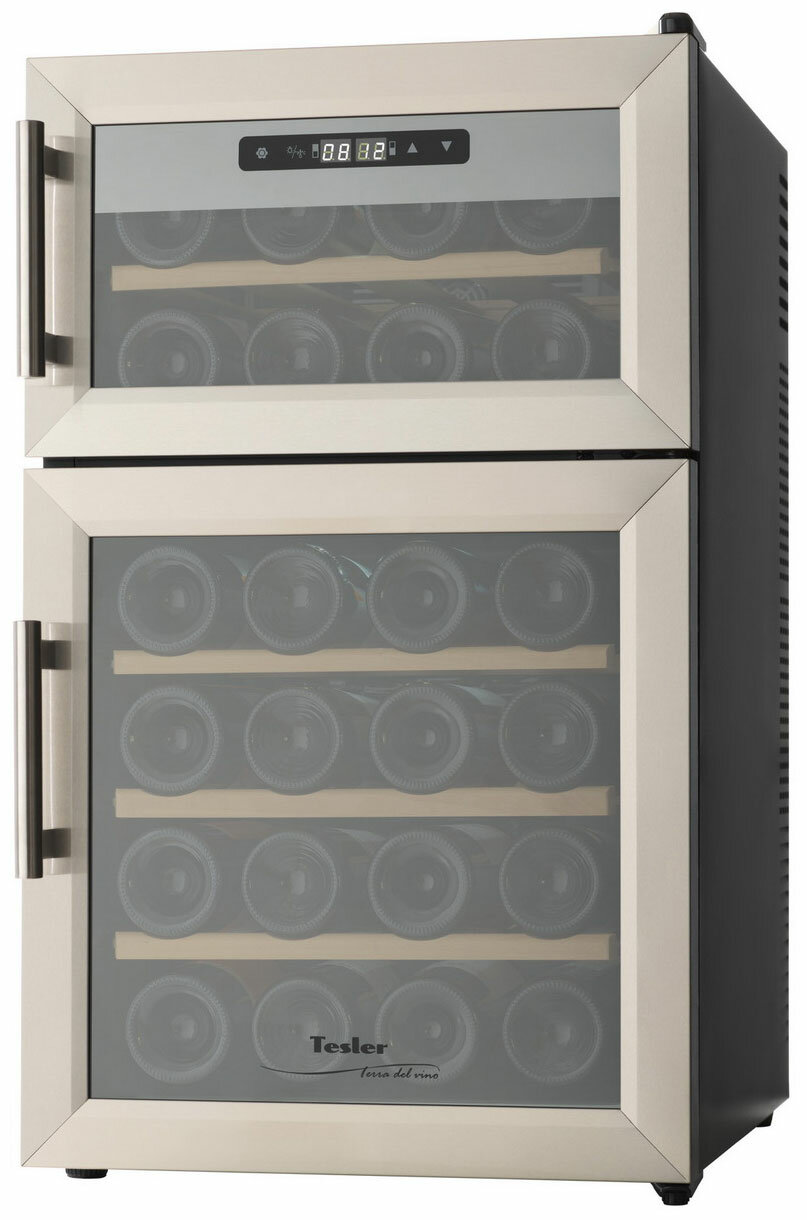 10 цен на Винный шкаф однокамерный TESLER WCD-242 вместимость: 24 бутылок, черный/стекло