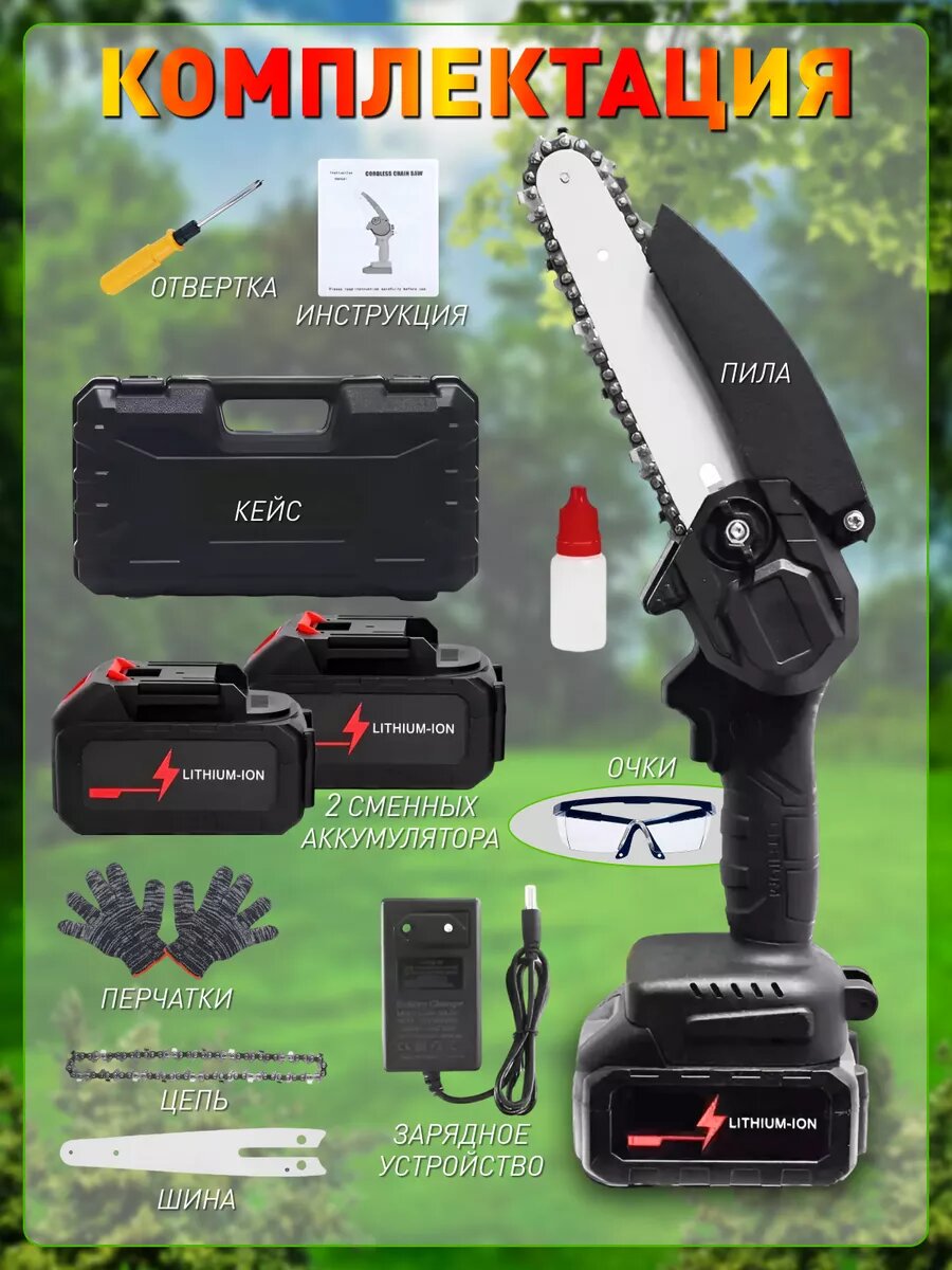 Пила аккумуляторная цепная 24Вт один аккумулятор Li-ion 2000 mAH