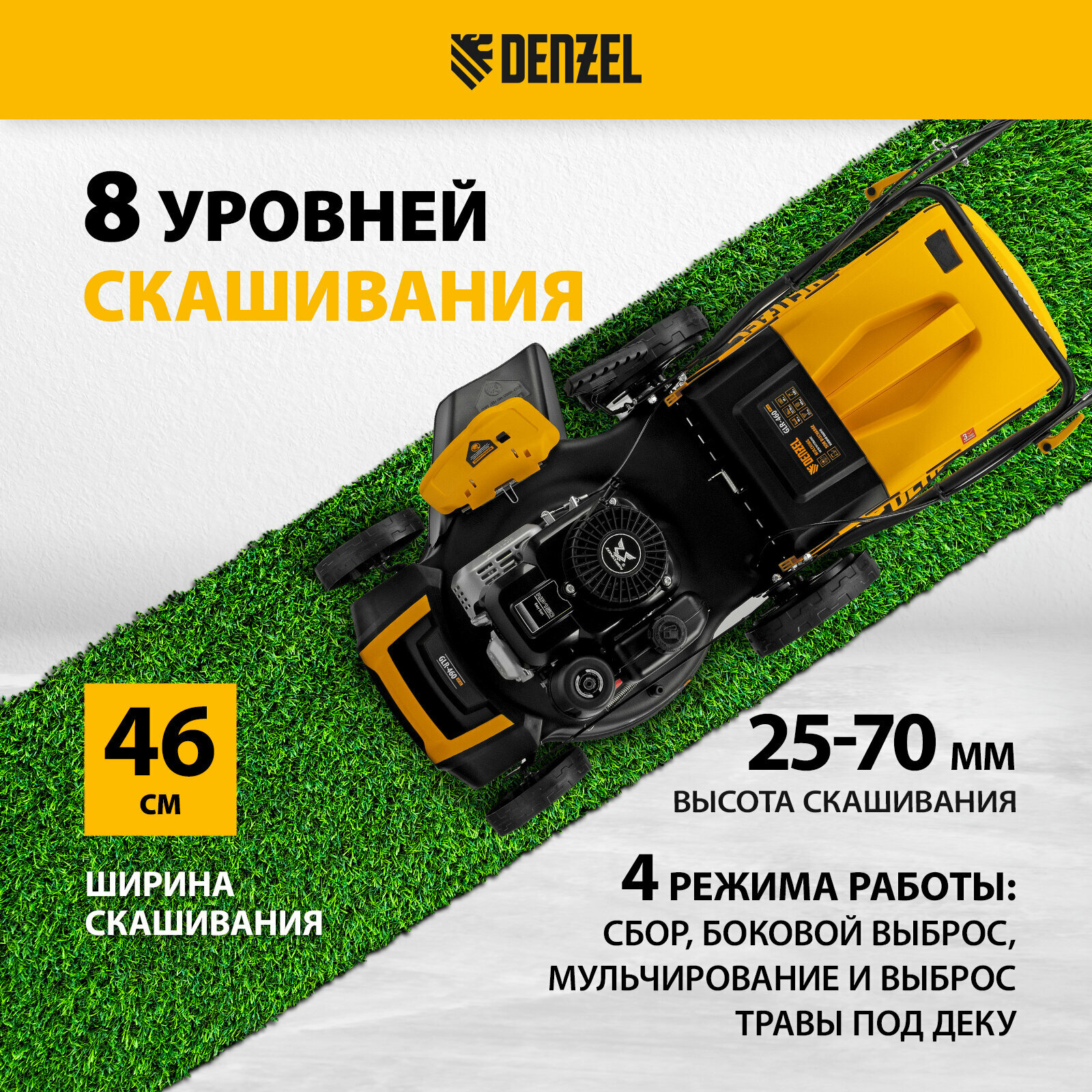 Газонокосилка бензиновая самоходная Denzel GLR-460SP-ZS, 46 см, 65 л 58824 информация: