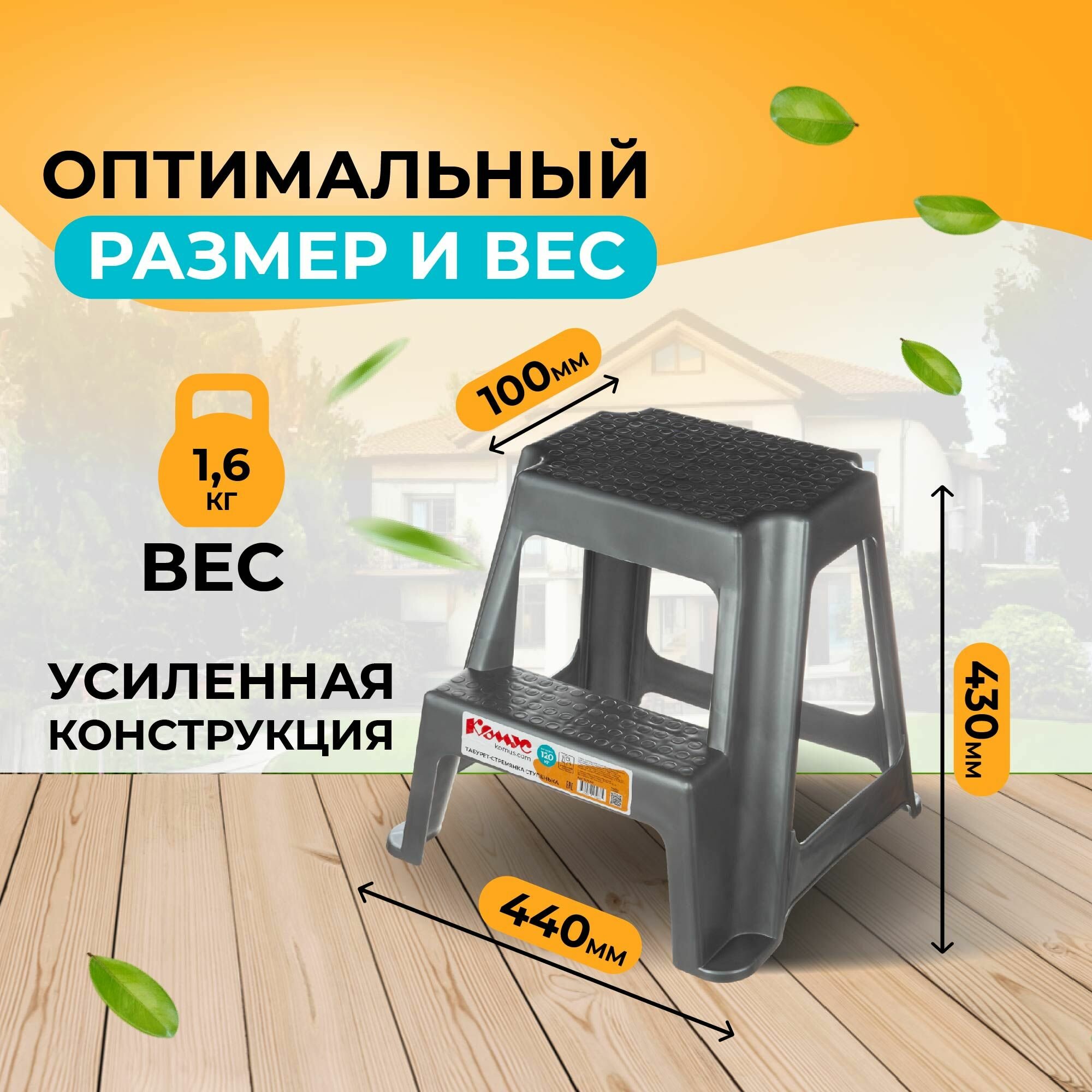 Табурет стремянка Комус из пластика, 2 ступени, 43 см, нагрузка до 120 кг информация: