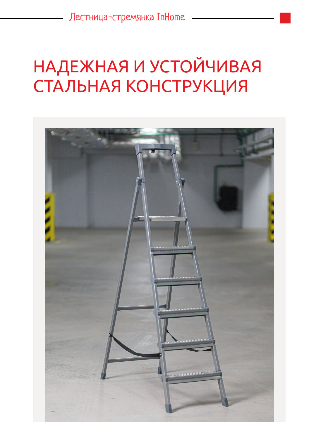 Лестница-стремянка Inhome INLT2/5 стальная, 5 ступеней + лоток, 1,06м 4 205 ₽
