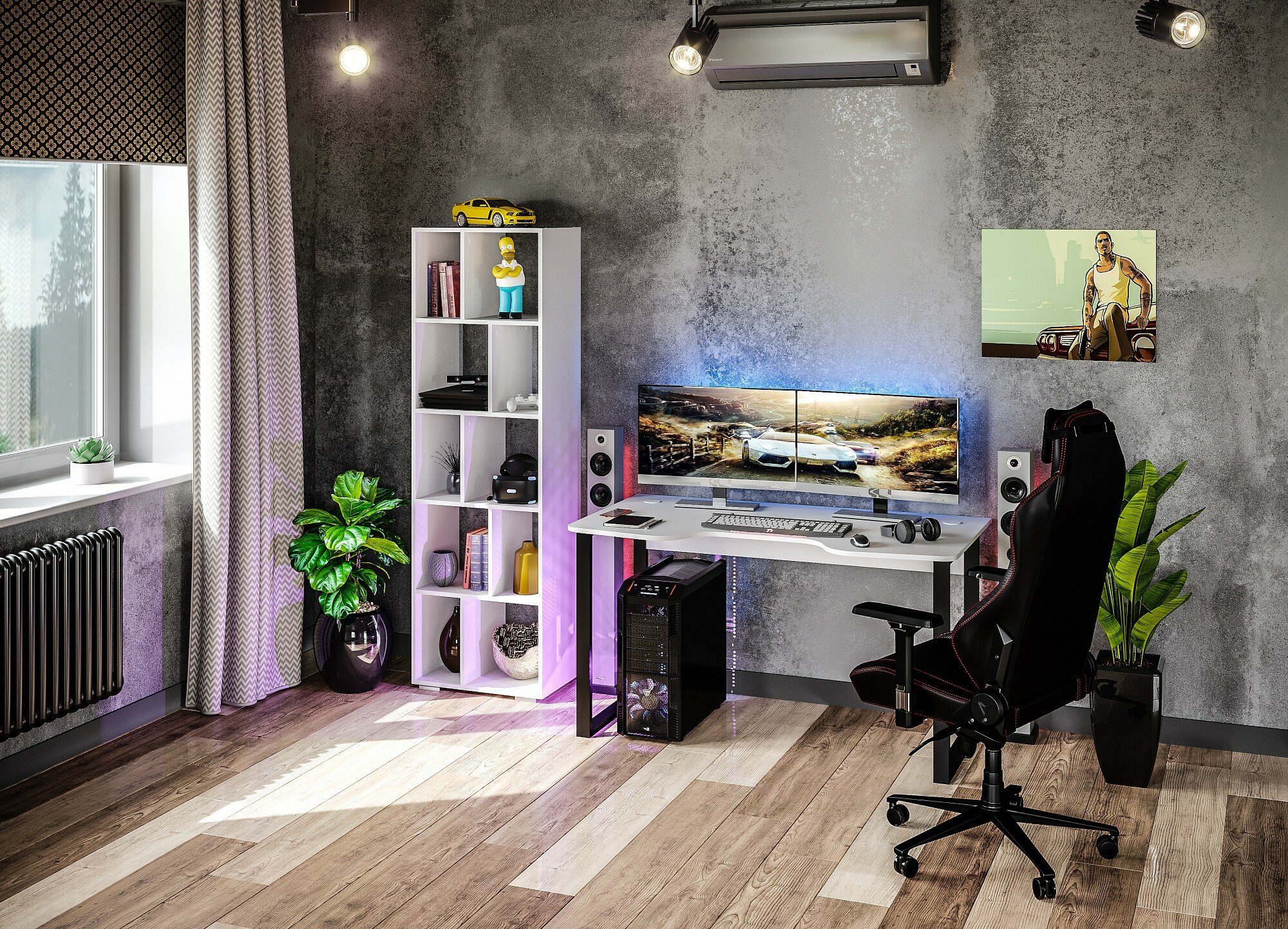 Умный игровой компьютерный стол с беспроводной зарядкой, usb-хабом и органайзером на квадратных опорах Technodesk-02