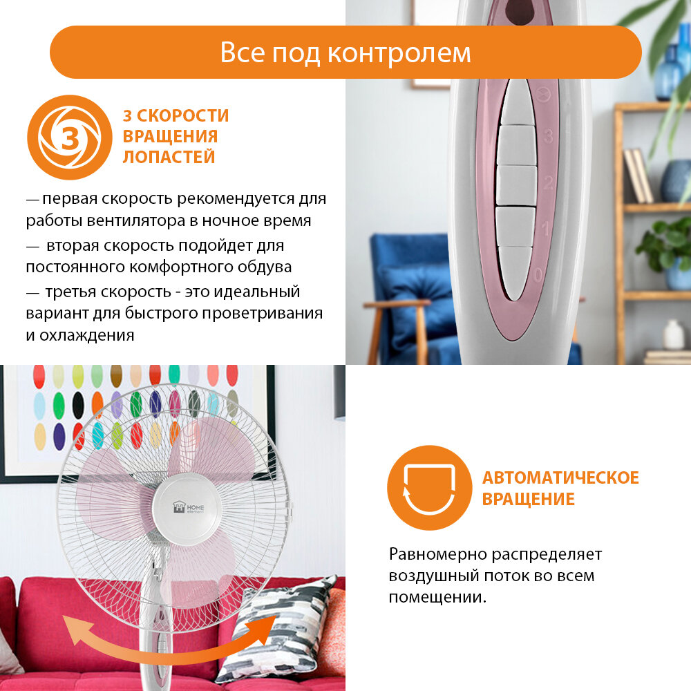 Напольный вентилятор HE-FN1205 белый/розовый информация: