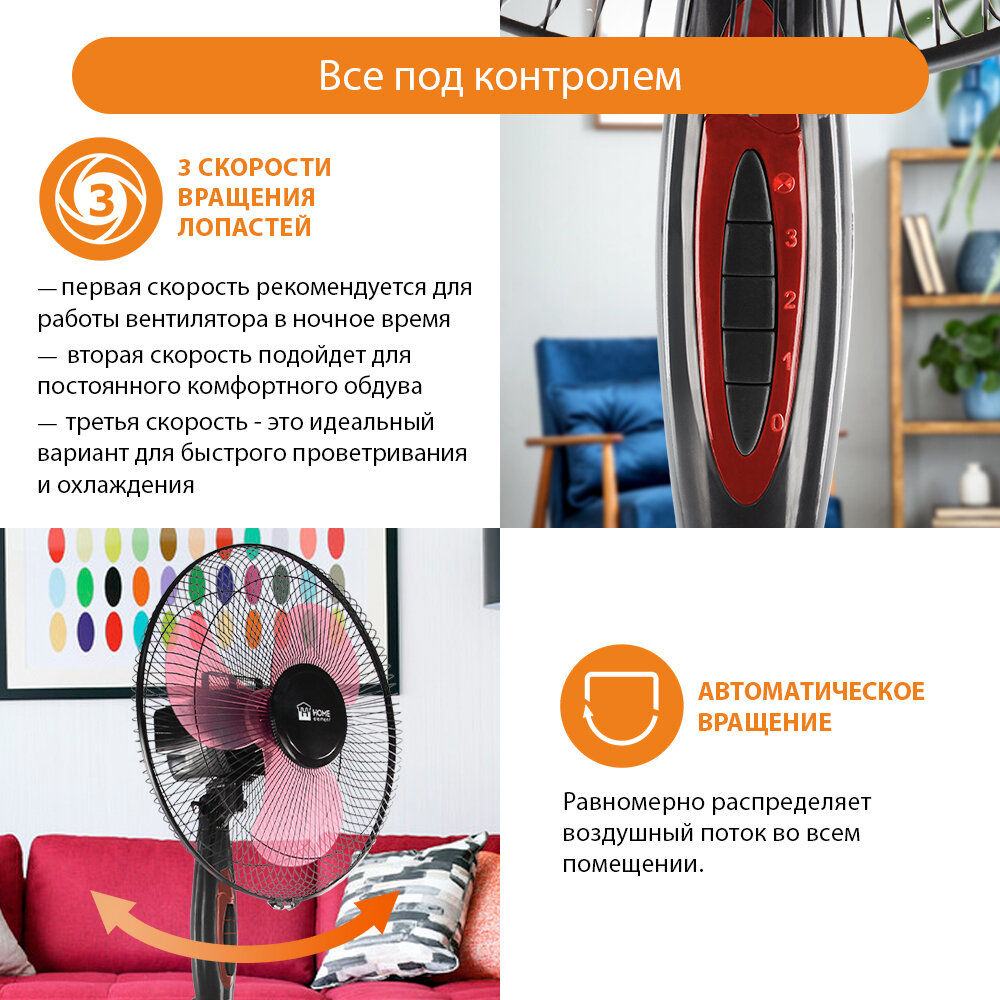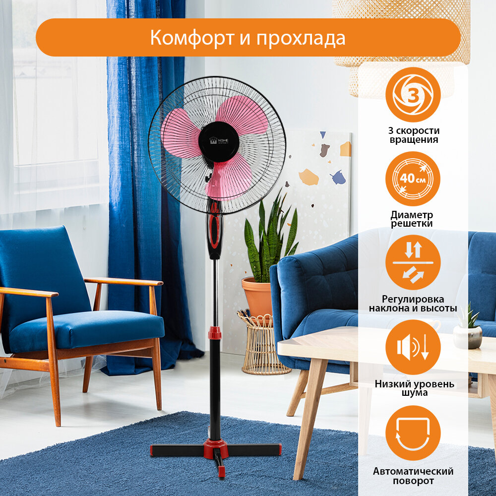 Напольный вентилятор HE-FN1205 черный/красный информация: