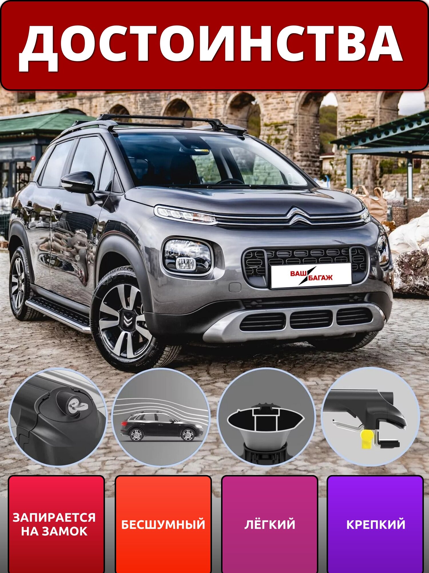 Багажник ED Арго на стандартные рейлинги Citroen Nemo / Ситроен Немо минивэн 5 дв. 2008-н. в. крыловидные поперечины чёрные - без замка.