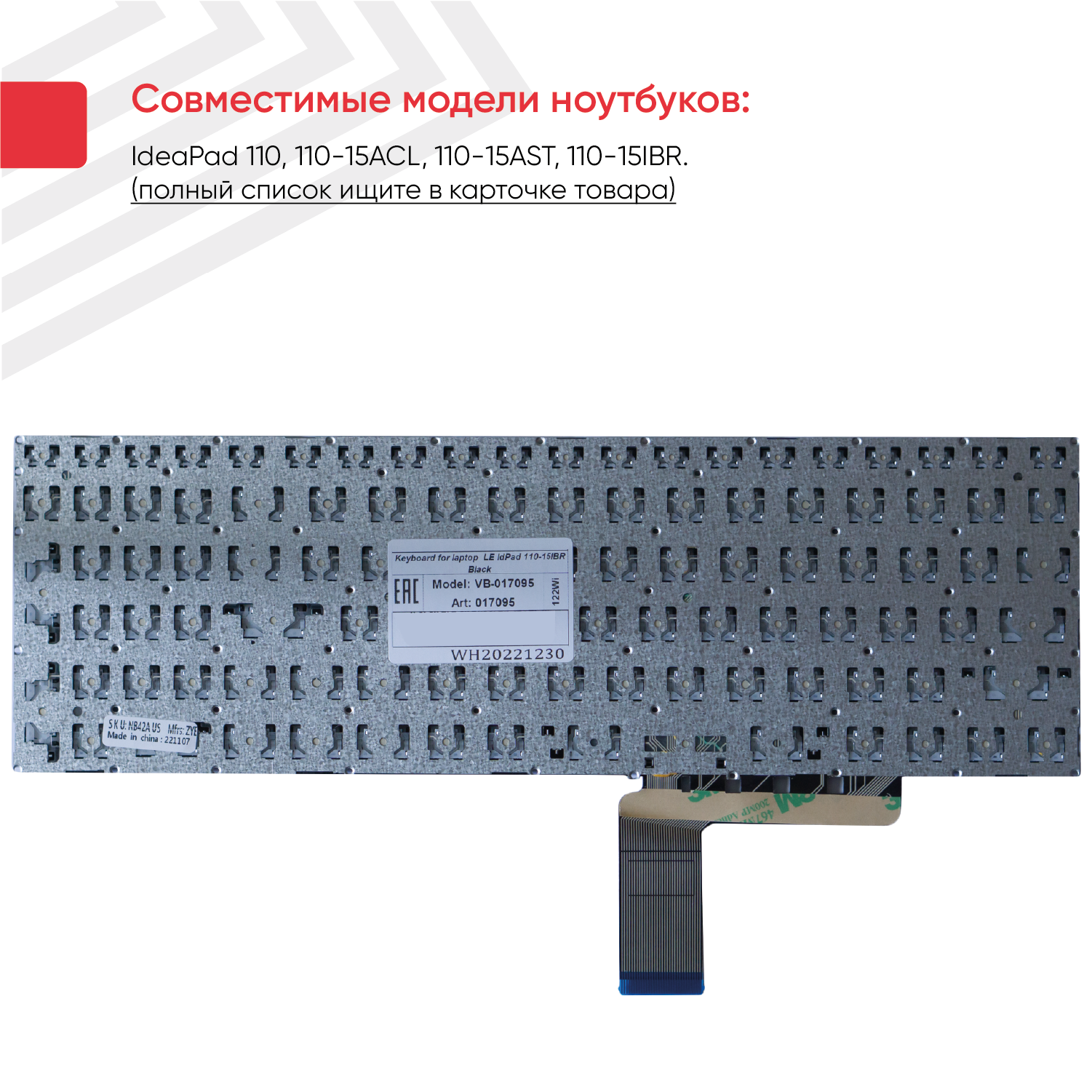| Совместимость | Lenovo IdeaPad 110, 110-15ACL, 110-15AST, 110-15IBR. Совместимые партномера: PM5NR-RU, 9Z.NCSSN.20R, SN20K93009,NSK-BV2SN |