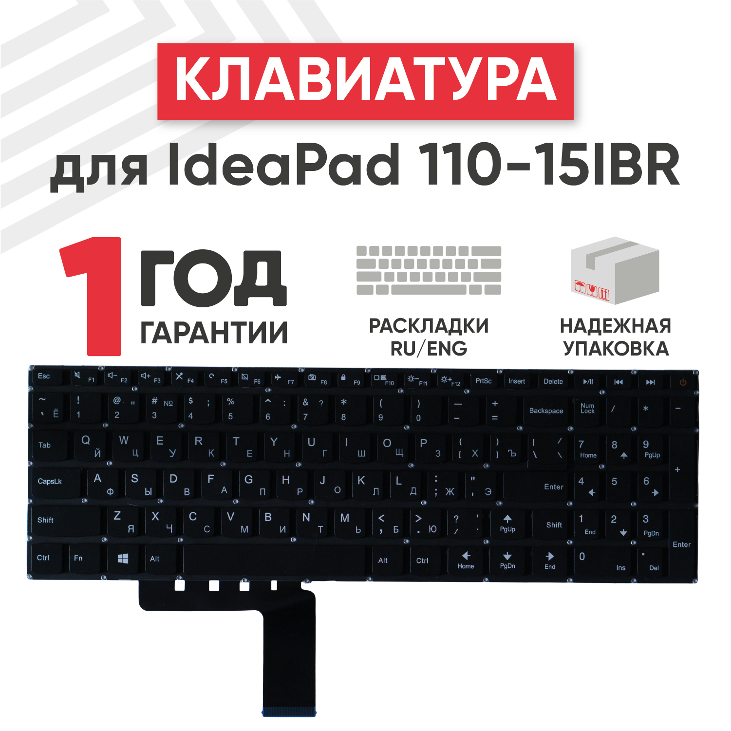 Отзывы на Клавиатура (keyboard) PM5NR-RU для ноутбука Lenovo IdeaPad 110, 110-15ACL, 110-15AST, 110-15IBR, черная