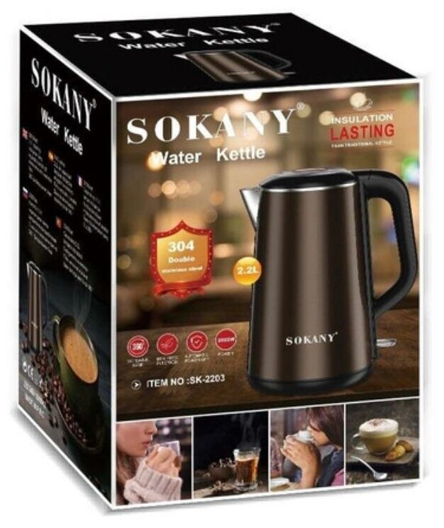 Электрический чайник Sokany, 2.2л, нержавеющая сталь/пластик, серый