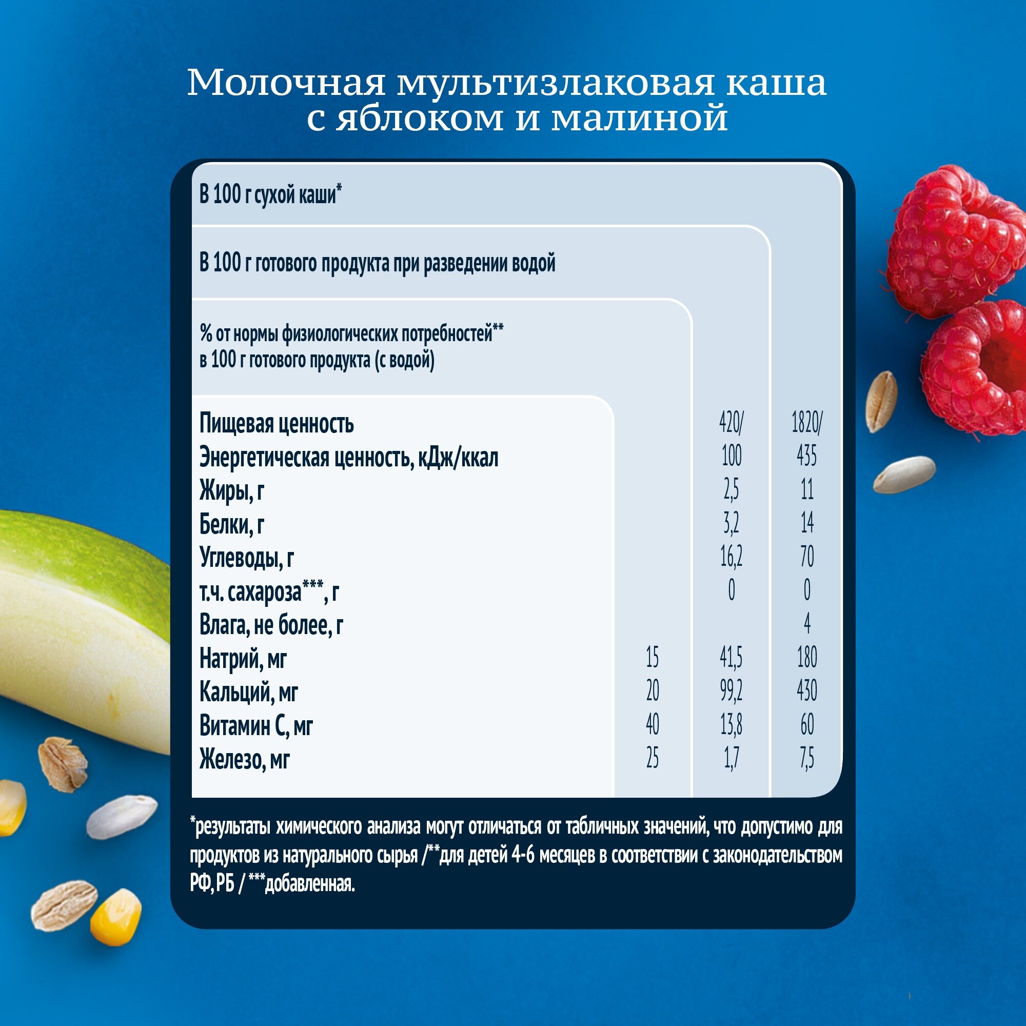 Каша молочная мультизлаковая с яблоком и малиной, Gerber с 6 мес, 180г информация: