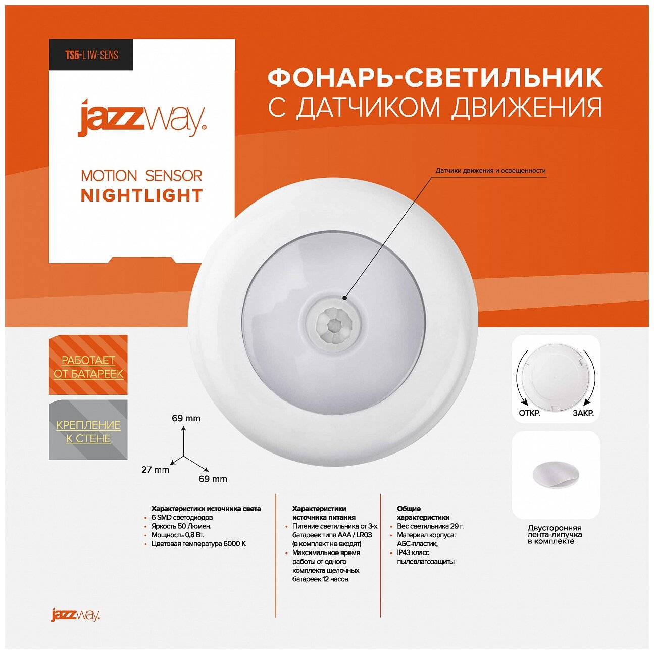 Светильник светодиодный с датч. движ. 0,8 Вт TS5-L1W-SENS JAZZWAY (5031661)